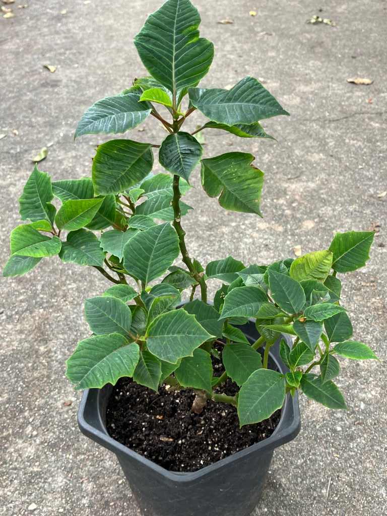 Poinsettias are not annuals, and they should not be left outdoors in our cold winter weather: https://aggie-hort.tamu.edu/newsletters/hortupdate/hortupdate_archives/2005/nov05/Poinsettias.html. Although it is best to purchase native plants, there is no reason to waste what can be used as a houseplant in our area. Unwanted poinsettias are frequently offered for free on Craigslist after the holidays, and they can revive if given a little patience and rudimentary care. The poinsettia in this month’s photograph came from our very own neighborhood plant stand last season, and it does not have colorful bracts because its lighting was not controlled.