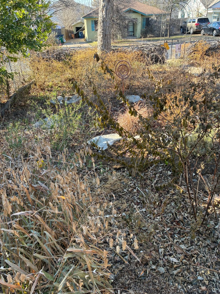 A brown, dormant lawn and barren trees are tolerated, but there is often uncertainty or haste about perennial shrubs and other plants. To be fair, it can be unclear what is still alive, but there are helpful resources to assist with these inquiries: https://tngaustin.com/freeze-maintenance/ More fundamental, however, is a human desire to impose “order” on landscapes that do not meet conventional aesthetic standards. By rushing, however, to strip our yards of any decay, we actually impoverish their ability to support abundant life.