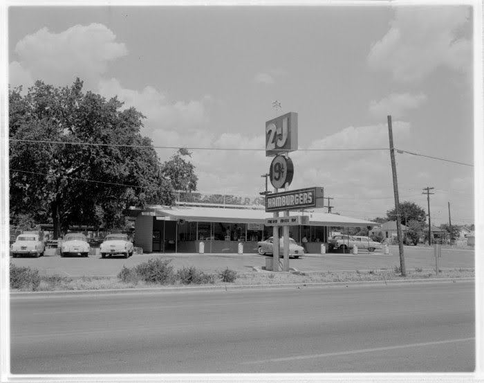 Road-houses like 2Js, The Stallion, and The Chicken Shack lined what was then called the Dallas Highway north of town (also known as “Georgetown Road”). Driving out of town on the highway, 2Js Hamburgers (home of the 19-cent burger!) was at 42nd Street, the Chicken Shack was at North Loop, and The Stallion was just south of Koenig, conveniently located right across the street from the Chief Drive-In Theater.