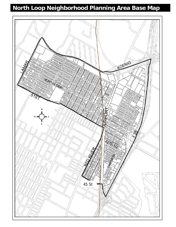 Despite its name, the North Loop Neighborhood Planning Area is bigger than the North Loop neighborhood! It includes the Ridgetop neighborhood (east of Airport to IH-35) and the so-called “Red River Sliver” (running east of Red River Street all the way down to 45th). Membership in the NLPCT is open to anyone living within its boundaries. A map of the North Loop Neighborhood Planning Area is below: